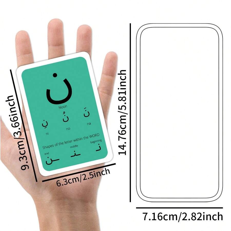 This set of 28 colorful flashcards helps children and beginners recognize, pronounce, and memorize the Arabic alphabet with ease. Each card includes clear letters with phonetic guidance, making it ideal for early education and Islamic learning at home or in class.