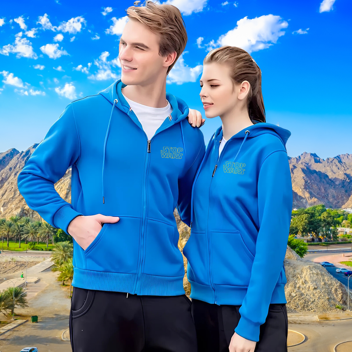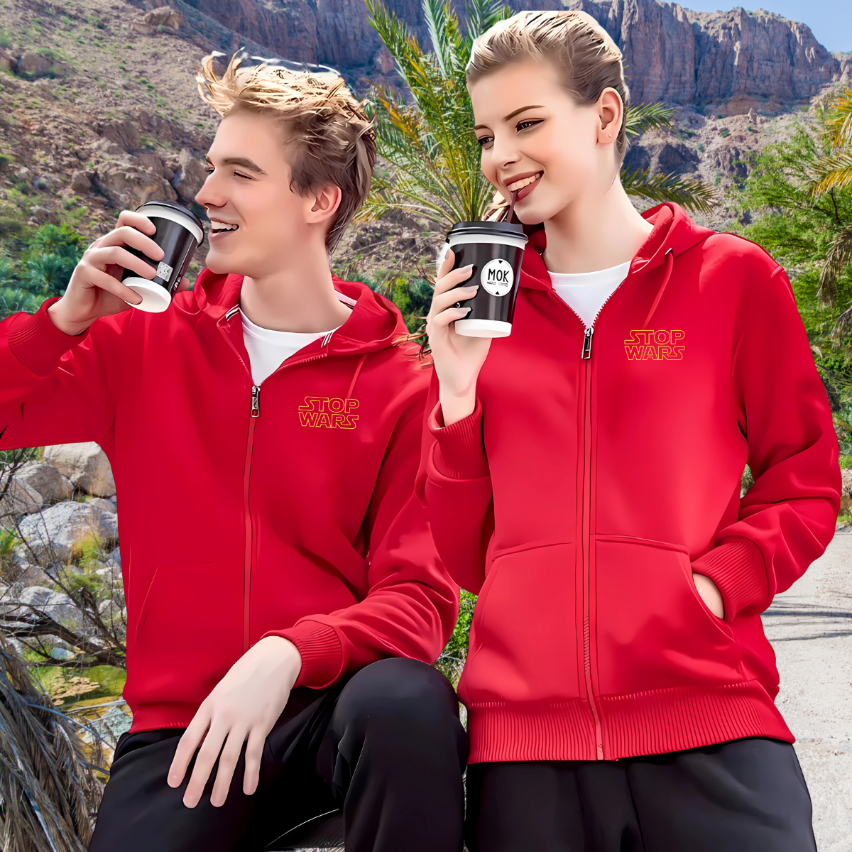 Discover our casual zip-up hoodie sweatshirt for both men and women: a garment that combines comfort, style, and a powerful message. Made with a perfect blend of cotton and polyester, this hoodie provides warmth and softness thanks to its fleece texture, making it ideal for all seasons.