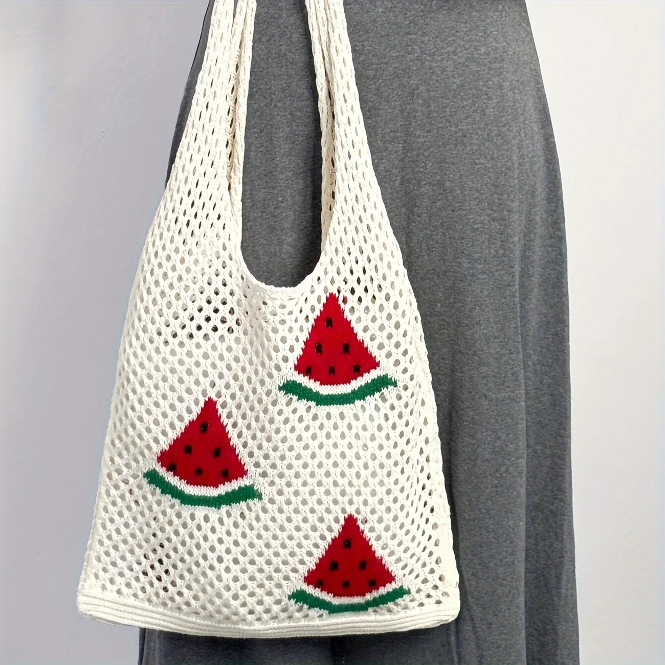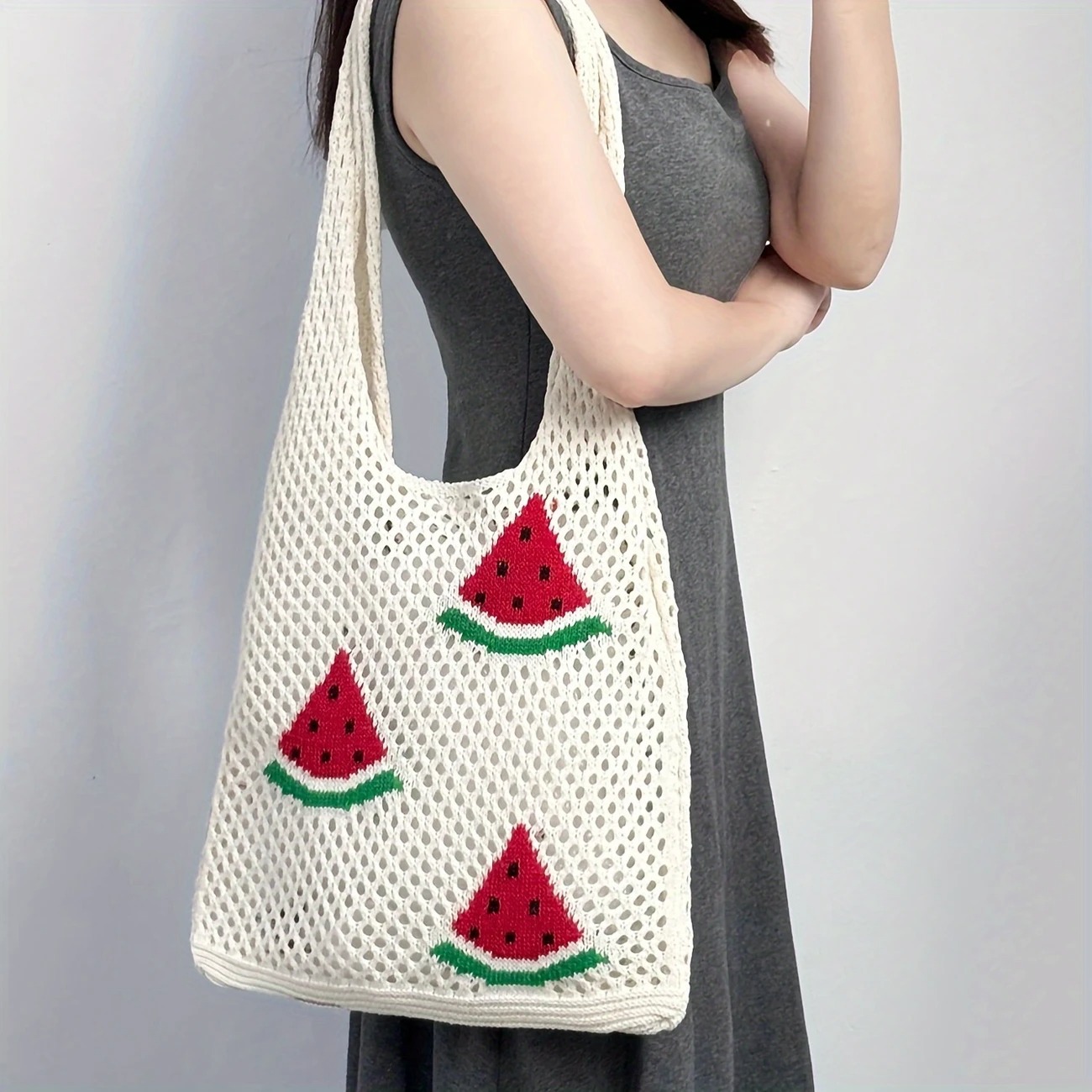 Add a fresh and fruity touch to your summer look with this adorable crochet mesh bag featuring playful watermelon designs. Lightweight, flexible, and totally on-trend, this tote is perfect for summer outings, school, shopping, or casual strolls. Its Y2K retro vibe and open-knit design make it a favorite among students and fashion lovers alike.