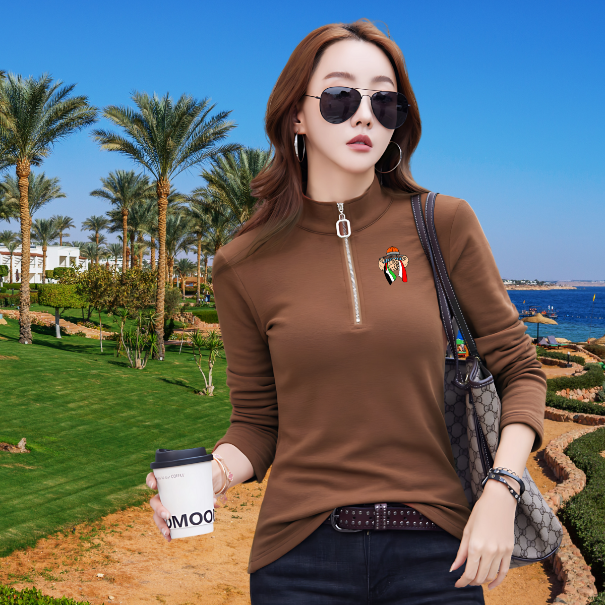 Discover the perfect blend of style and comfort with this high-neck pullover featuring a modern zipper. Made from a premium fabric blend (cotton, polyester, spandex, and viscose), this pullover is ideal for cool autumn and winter days. Its flattering fit and sleek design make it an essential piece for a casual yet sophisticated look.