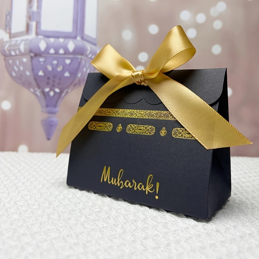 Celebrate Eid, Ramadan, Hajj, or Umrah with this elegant set of 10 Islamic gift boxes featuring a « Mubarak! » design.