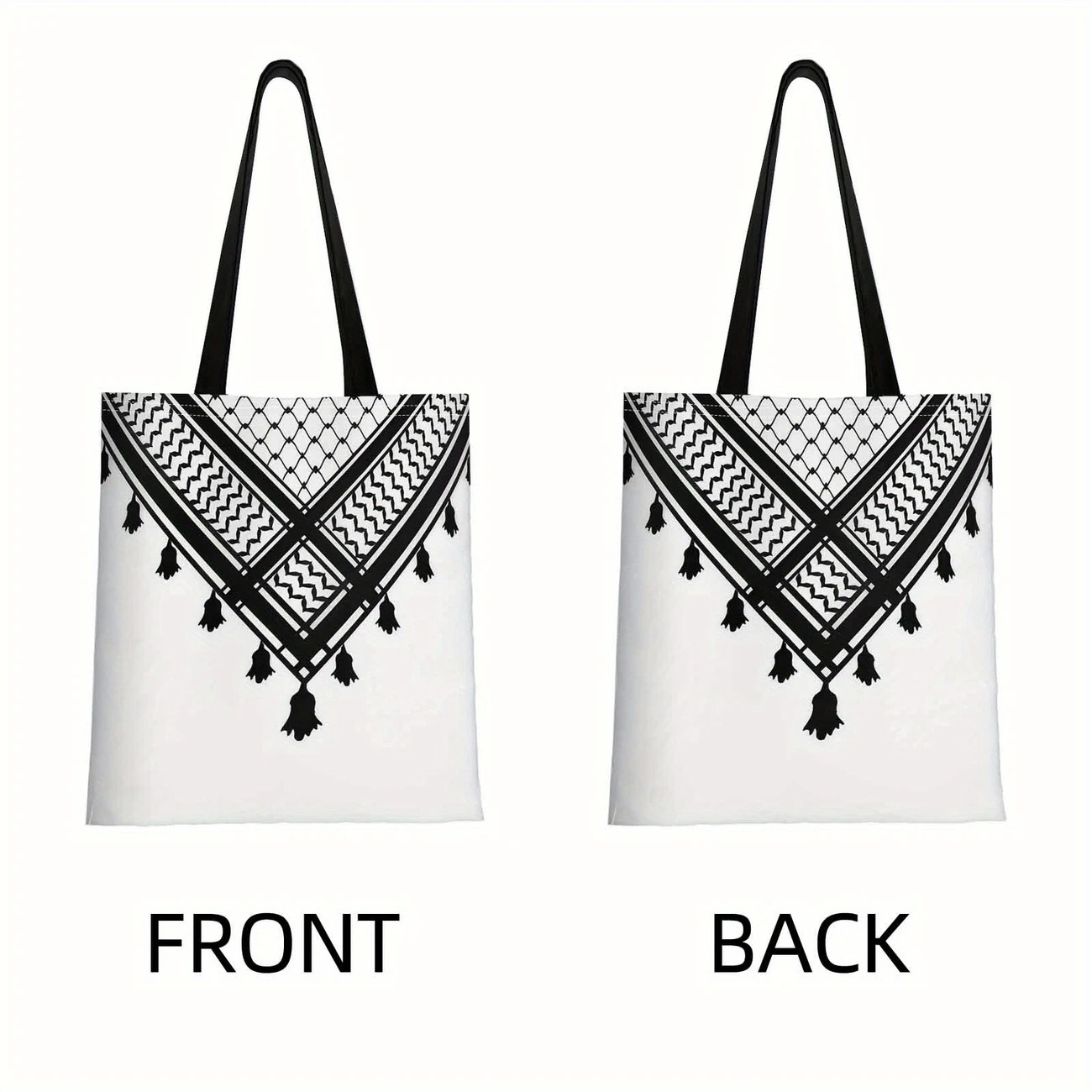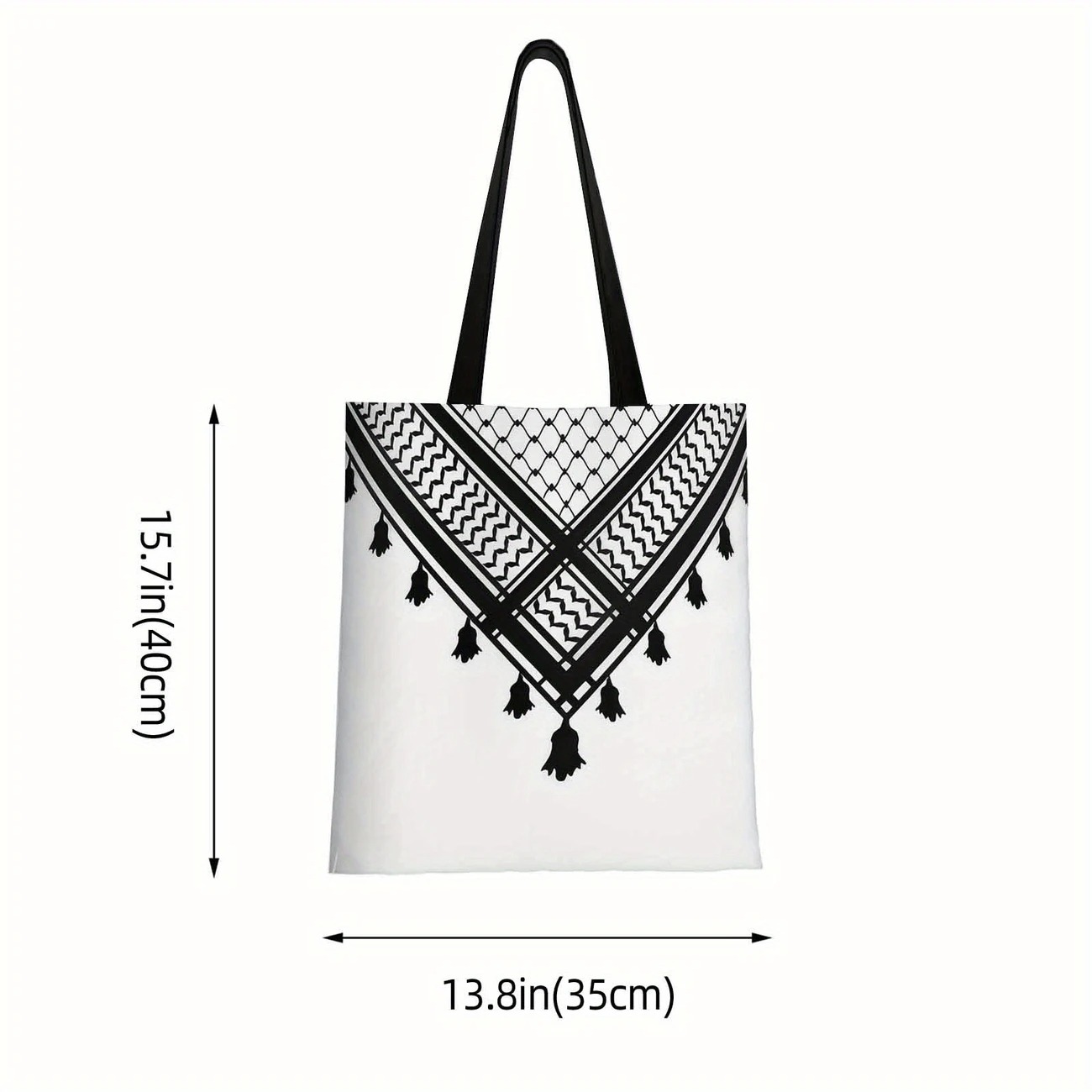 This tote bag features the iconic Palestinian keffiyeh pattern, symbol of resistance and identity. Lightweight yet durable, it’s perfect for everyday use: shopping, beach, travel, or casual outings.