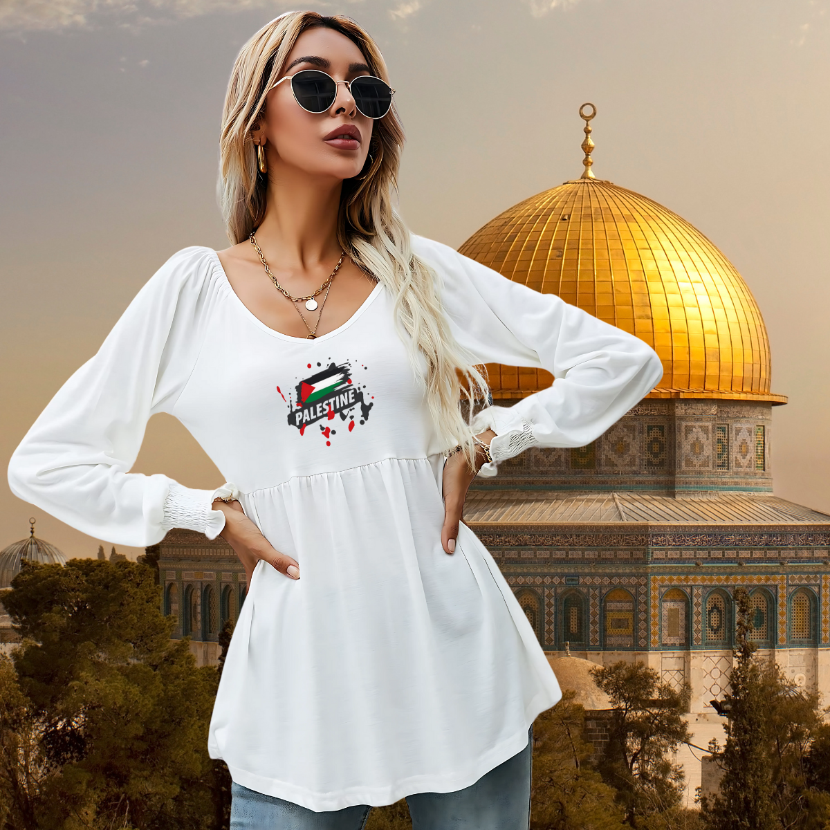 Elegant Blouse with Puff Sleeves and V-Neck – A Tribute to Style and Palestine