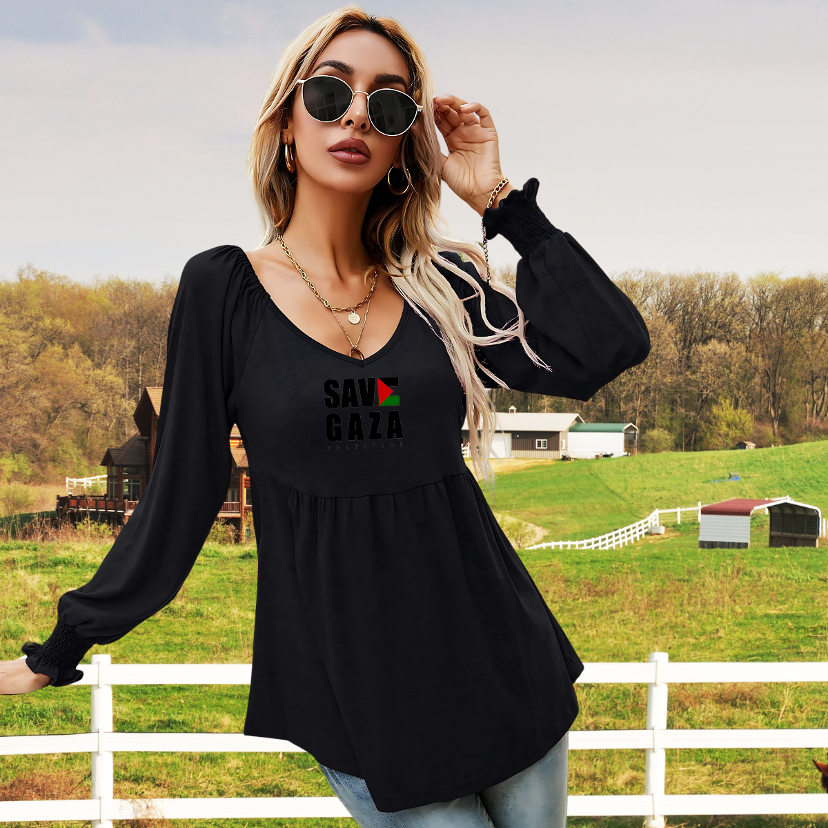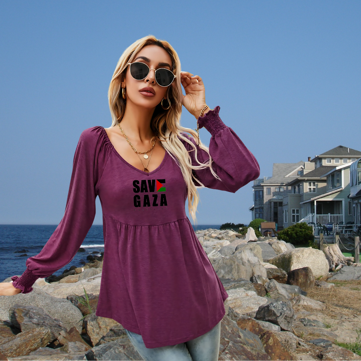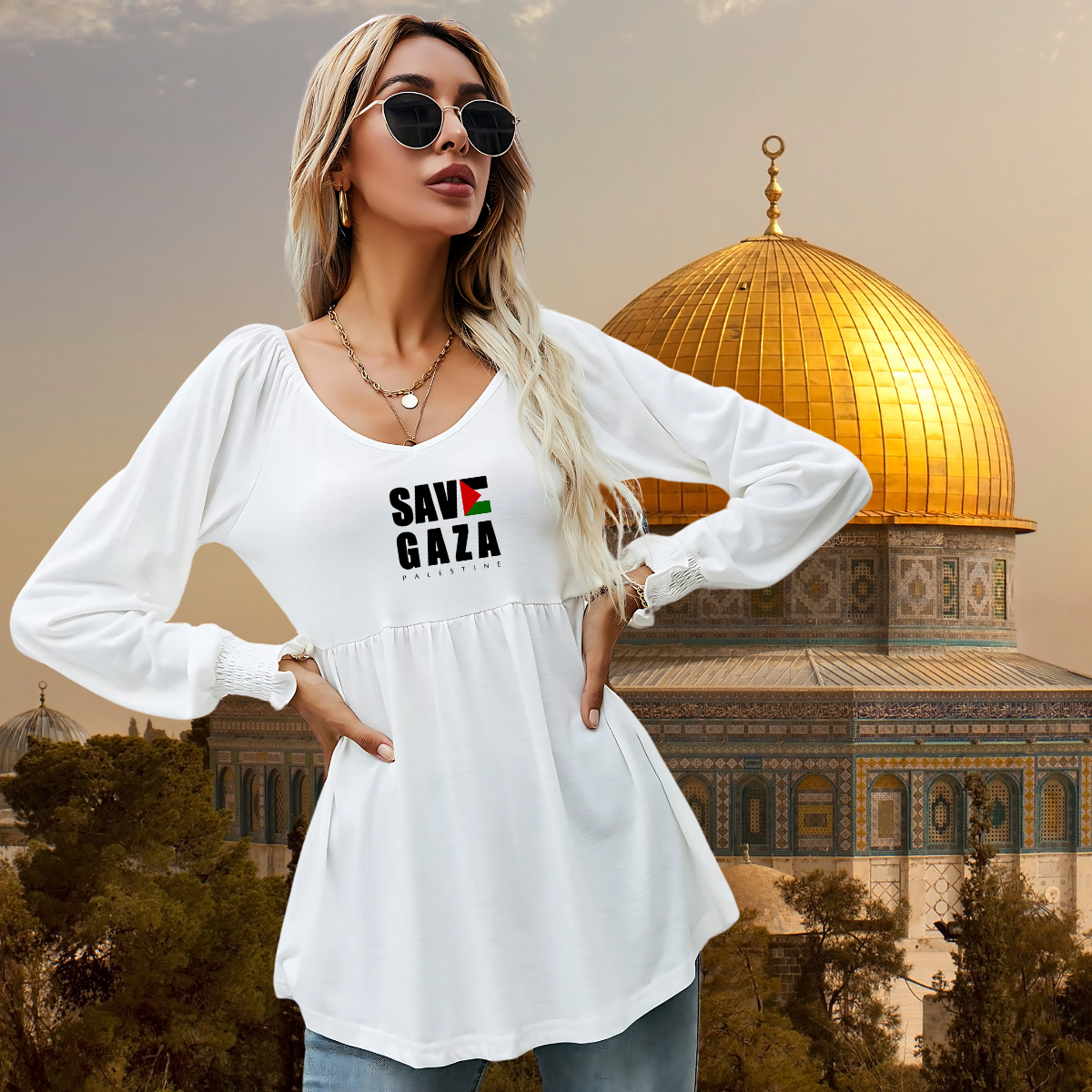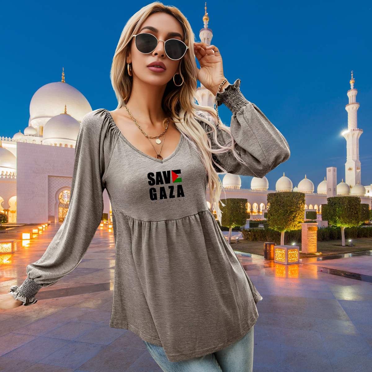 Puff Sleeve V-Neck Blouse ‘Aid for Gaza’