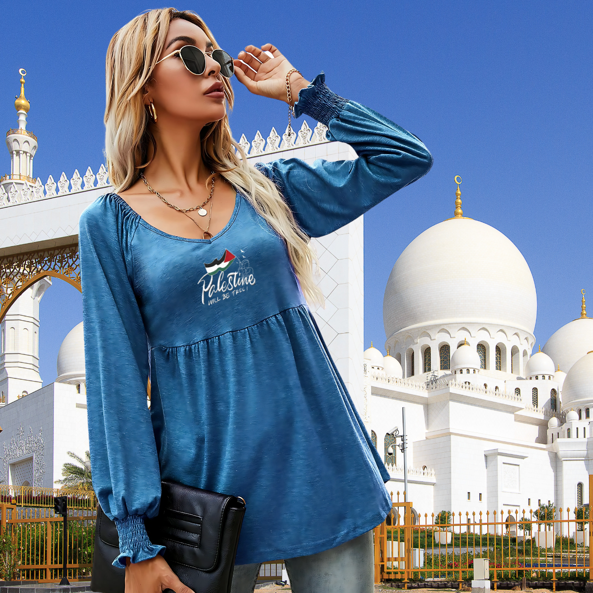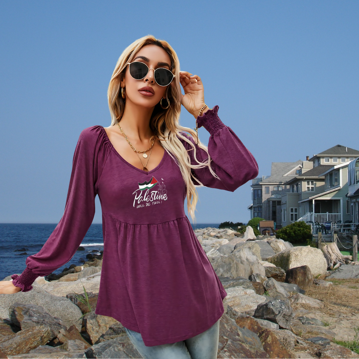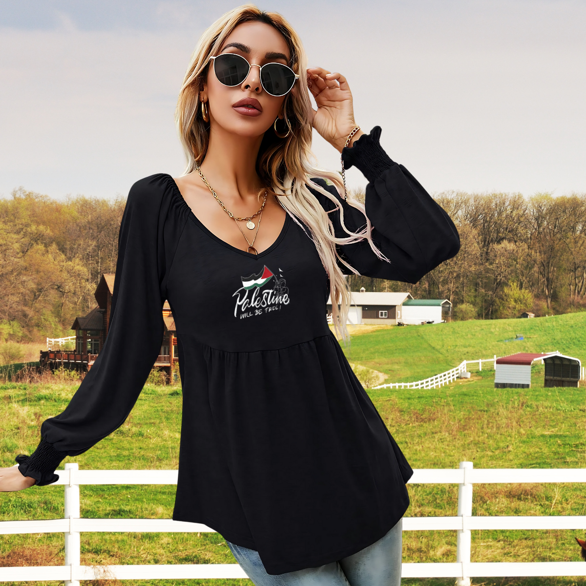 Elegant Blouse with Puff Sleeves and V-Neck – A Tribute to Style and Palestine