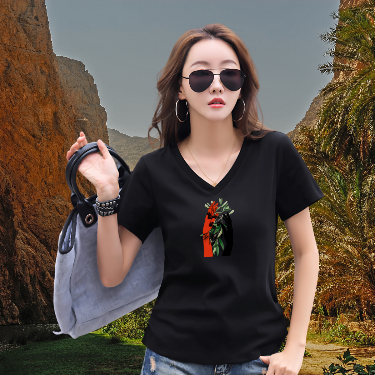 Discover a T-shirt that blends elegance, comfort, and commitment. Crafted from soft, breathable cotton, this short-sleeve V-neck T-shirt is perfect for summer and casual occasions. Its tailored fit enhances your silhouette while providing optimal freedom of movement.